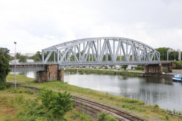 Segmentbogenbrücke über der Eisenbahnanlage ( Segmentbogenobergurt ) und Balkenbrücke in den 2 Uferbegleitwegüberbauten
