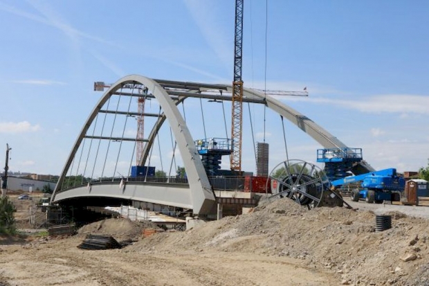 Bogenbrücke, Bogen über der Fahrbahn, Stabbogenbrücke