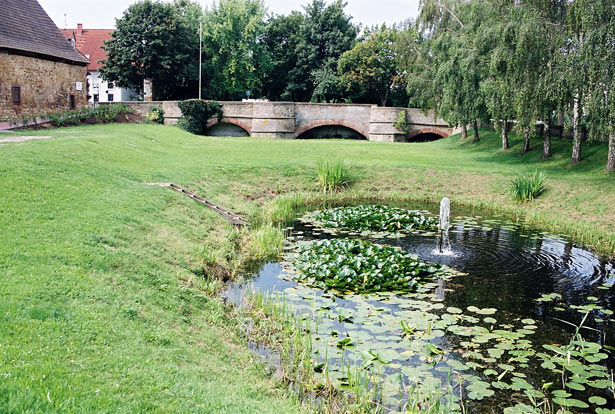 4 Bögen, zwischen dem mittleren und dem nördlichen Bogen ein Backsteinbogen aus dem Jahre 1831.