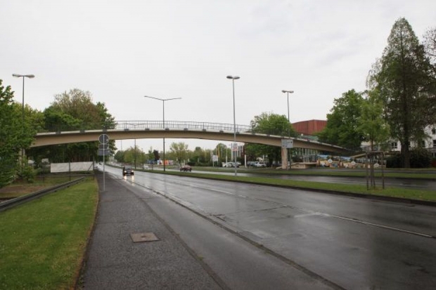 Die Brücke wurde abgerissen, weil sie marode war; da die Fußgängerbrücke eine Verbindung einer Schule zu den Sportanlagen war, über die täglich mehrmals Dutzende von Schülern die Bundesstraße B54 überqueren mussten. Als Behelfslösung wurde die Ampelanlage mit einer App-Steuerung versehen, damit die Lehrer die Ampel per Smartphone für die Schüler bis zu mehreren Minuten auf GRüN schalten können. Das freut dann die Autofahrer. Eine neue Brücke ist momentan zu teuer.