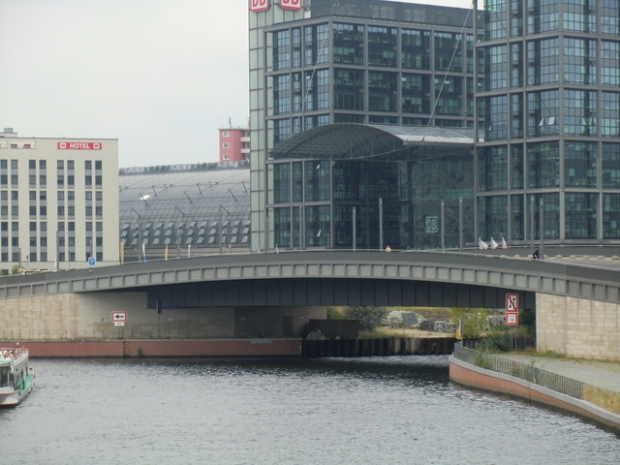 Die Hugo-Preuß-Brücke wurde zwischen 2002 und 2004 errichtet. Sie hat eine Gesamtlänge von 88,50 m und eine Gesamtbreite von 24 m. Es wurden 1.400 t Baustahl verarbeitet. Die Baukosten belaufen sich auf 7,8 Mio. €. Die Brücke mit einem Überbau aus Stahl, wurde nach einem Entwurf des Architekturbüros Professor Ungers gebaut. Sie folgt im Grundriss dem bogenförmigen Verlauf der Spree. Die Gestaltung des quadratisch kassettenförmigen Gesimsbandes, welches beidseitig über die Ufer des Berlin-Spandauer-Schifffahrtskanals hinausgeführt wird, gibt ihr ein besonders schlankes und stringentes Erscheinungsbild. Auf der Brückenoberseite wird der bogenförmige Verlauf durch Gestaltungselemente aus 20 cm breiten Stahlstreifen hervorgehoben, die einschließlich der Beleuchtungsstelen über die Brücke hinaus fortgeführt werden.