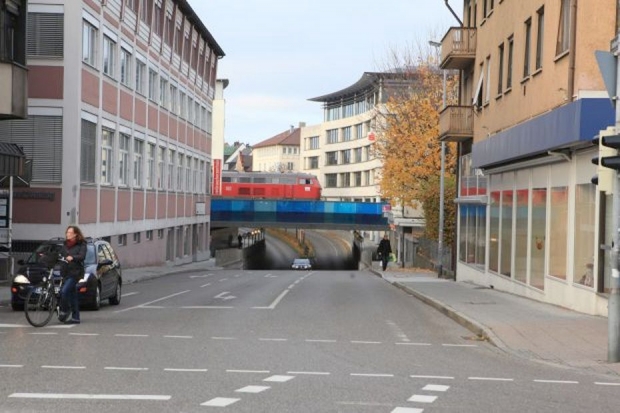 Auf beiden Seiten der Eisenbahnbrücke wurden Stahltrogbrücken für Fahrradwege ergänzt