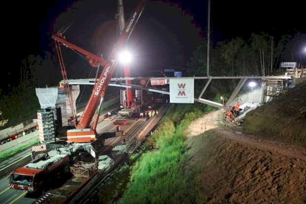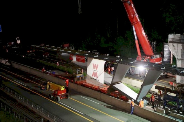 Erstes Brückenbogensegment (Südhälfte) wurde in der Nacht vom 18.06.2016 auf den 19.06.2016 eingesetzt.