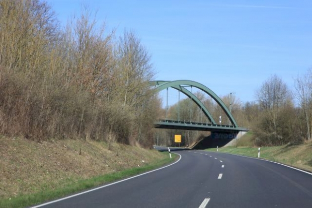 Bogenbrücke, Bogen über der Fahrbahn, Stabbogenbrücke