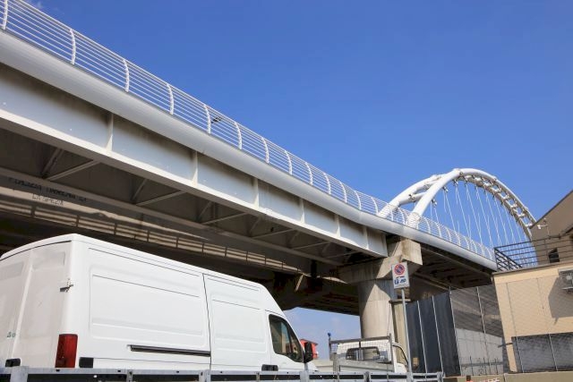 Bogenbrücke, Bogen über der Fahrbahn