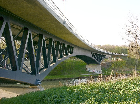 Stahlfachwerkbrücke mit Betonfahrbahn