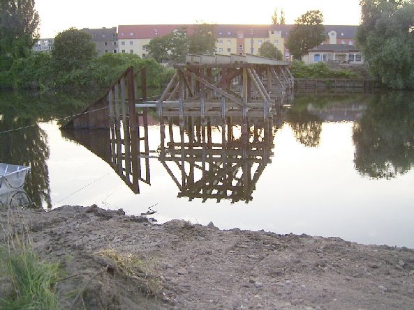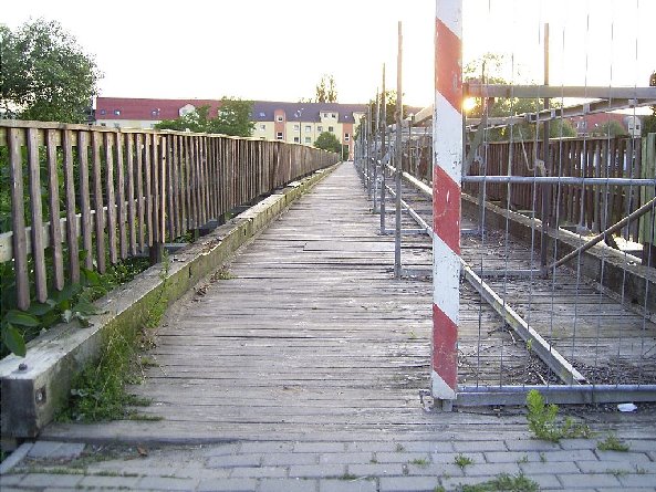 durch das Hochwasser 2002 stark beschädigt musste die Brücke abgerissen werden. Sie wurde durch eine moderne Hängebrücke (BAS 8758) ersetzt.