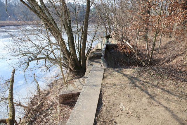 Der letzte erhaltene Überbau, aus Richtung Grimma unt Bf. Er stammt von 1931, nach der Sprengung am 15. April 1945 und der Reparatur des Brückenzuges ist die Brücke wegen Mangel an Oberbaumaterial nicht wieder genutzt worden.