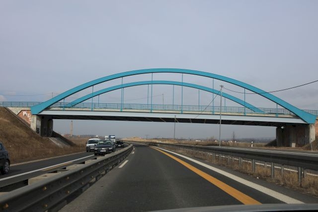 Bogenbrücke, Bogen über der Fahrbahn, Stabbogenbrücke