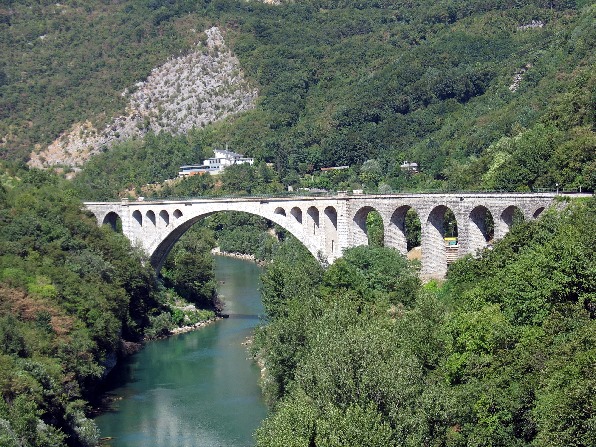 Im 1.Weltkrieg wurde im Jahr 1916 der Bogen zerstört und danach von den Italienern wieder aufgebaut (1927). Heute wird die Brücke von der slowenischen Eisenbahngesellschaft verwaltet und 1985 wurde sie unter Denkmalschutz gestellt. Angeblich weltweit größter Steinbrückenbogen