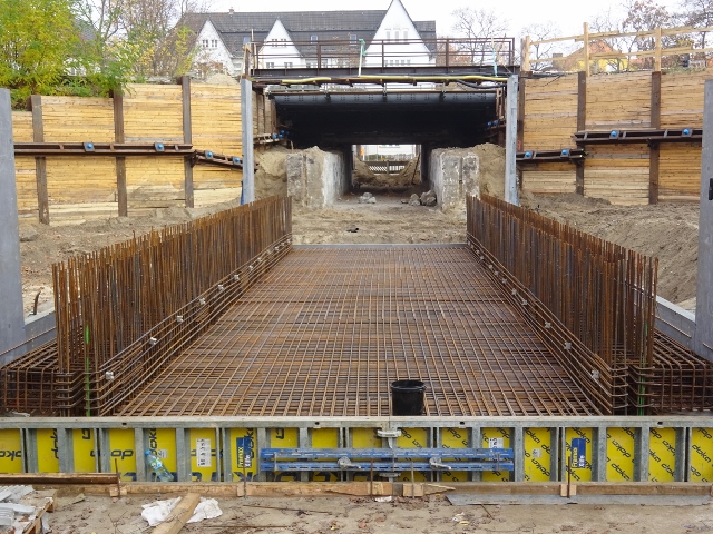 EÜ Fernbahngleise Berlin - Frankfurt Oder etc / Zu und Durchgang Bf. Karlshorst Ostende, Überbau hier in schwarz