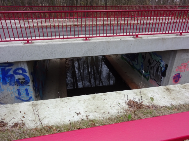 Neue Berliner Straßenbrücke / Erpe , Neuenhagener Mühlenfließ, links im Bild