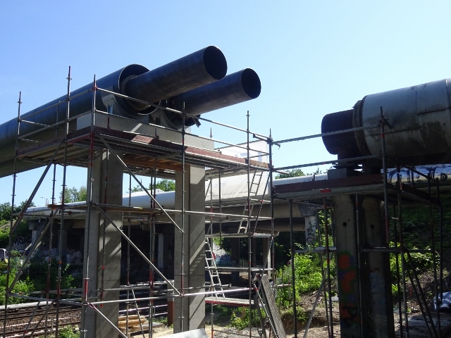 Neue Heizleitungsbrücke / EU Strecke Berlin - Strausberg - Küstrin, das schwarze Rohr