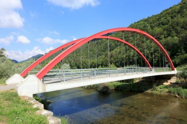 Bogenbrücke, Bogen über der Fahrbahn, Stabbogenbrücke