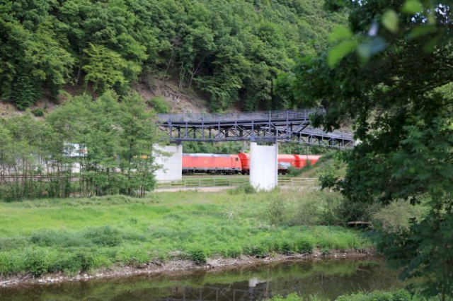 aktuell als Aussichtplattform gebaut, soll es später eine Brücke vom Lenhauser Tunnel über die Eisenbahn und Straße werden.