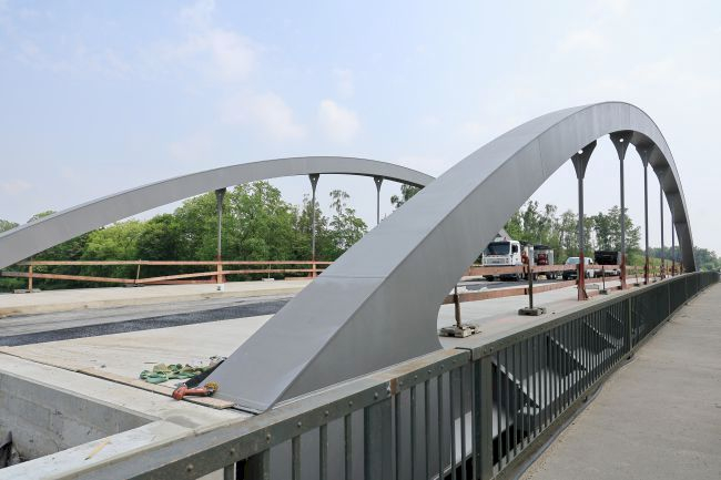 Arch bridge, arch over the roadway, tied-arch bridge