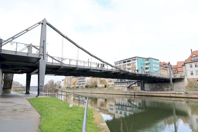 Completion late 2010; the only bridge over the Rhine Main-Danube Canal within the boundaries of the world heritage; opened on 03.12.2010; Predecessor: stone arch bridge (18.Jahrhundert), 1829-1892 chain bridge (model of the new Brooklyn Bridge), the successor bridge survived the second world war, 1953 girder bridge (BAS 11688)