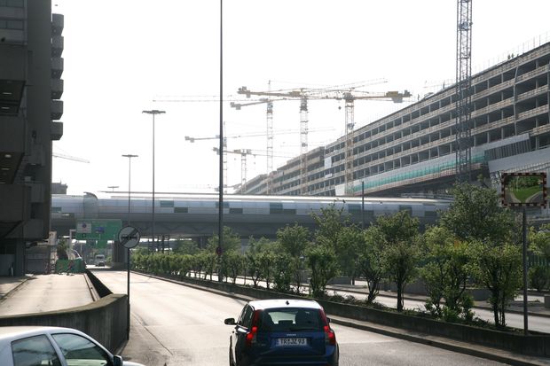 Connection bridge from the airport to the train station of Cologne-Frankfurt Intercityexpress line