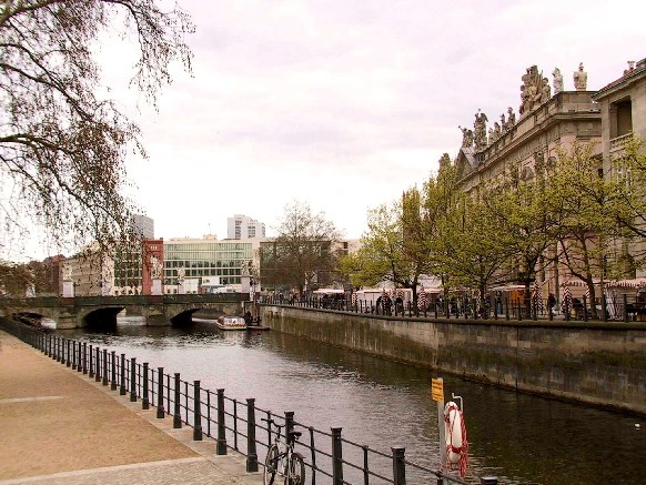 <br>Center (Alt-Berlin/Friedrichswerder), crosses the Kupfergraben (spree Canal) and connects the road the Schlossplatz under den Linden.<br><br>Created according to plans by Karl Friedrich Schinkel 1821-1824, the bridge received its name at the laying of the foundation stone on 29 5 1822. The outer of the three stone arches inserted per 11,20 m width, which was average of 7.64 m wingspan 1912 instead of 8 bridges flaps. Schinkelsche cast iron reliefs adorn the railing and the balustrades carry on both sides four granite postamente. Schinkel had earmarked as a bridge jewelry copper work, showing the life and martyrdom of a warrior. This plan could not be realised considering the empty state coffers. After a competition, the sculptures were first created and set up between 1842 and 1853. The eight white, each about 3m high figures made of Carrara marble stand on high gray marble pedestals, which are medallions with Eagle motifs.<br><br>1 Group: Nike taught the boy in history, in 1847 led by Emil Wolf (1802-1879).<br><br>2. Group: Athena taught the boys in the use of weapons, carried out in 1853 by Friedrich Anton Hermann Schievelbein (1817-1867).<br><br>3. Group: Athena armed the Warrior, 1851 carried out by Karl Heinrich MÖLLER (1802-1882).<br><br>4. Group: Nike crowned the winner, carried out in 1853 by Friedrich Drake (1805-1882).<br><br>5. Group: Nike is the wounded warrior 1853 carried out by Ludwig Wichmann.<br><br>6 Group: Athena encouraged the Warriors in the fight, 1853 carried out by Albert Wolff (1814-1892).<br><br>7 Group: The youth of Pallas anew in the fight led (Athena helps the Warriors in battle), 1854 carried out by Gustav winds.<br><br>8 Group: goddess of victory Nike contributes the fallen heroes to Mount Olympus, 1857 carried out by August Wredow (1804-1891).<br><br>in 1943, the character groups in the South port of Spandau were spent. in 1981, the Senate of Berlin within the framework of the German exchange of cultural goods handed the magistrate of Berlin the sculpture group 1983-84 after restoration is again raised at the historic site. in 1989, the base with the newly created Eagle medallions were completed.<br>The Castle bridge was called the Marx-Engels bridge 1951-1991. The bridge is listed with the allegories. (Info from www.luise-berlin.de)