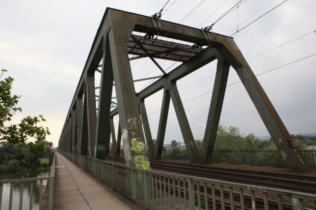 Railway Mainz-Wiesbaden, old Kaiser bridge (official name North Bridge) was built in 1901-1904, blown up by the army in 1945, 1955 thoroughly rebuilt