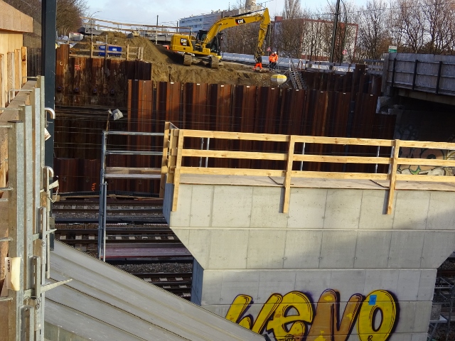 The bridge has 3 buildings. In the middle of the power supply cable be on private construction over transferred. On both sides there is a superstructure with 2 lanes, 1, wheel - and Gehbahn and Inn Enge Empire each ensured a Straßenbahngleis.Diese bridge the change derStraße and tram ride away from the old Lichtenberger bridge. She opened the way the Lichtenberger that for the new bridge and at the same time opened up the tangential connection of Schöneweide, Karl Horst, Friedrichsfelde Lichtenberg Northeast and Hohenschönhausen.Der new district of Marzahn was also approachable this, because the development via today's Märkische Allee was not guaranteed. My personal commitment to this bridge was the Hauptauftraggeberseitige construction management for this bridge for road and construction Office in Berlin. Construction manager of the contractor for the reinforced concrete work of Horst Klingauf the motorway construction works and for the construction of steel were Mr. Tischer. Design was the design and engineering design operation of road and pavement engineering in Berlin.