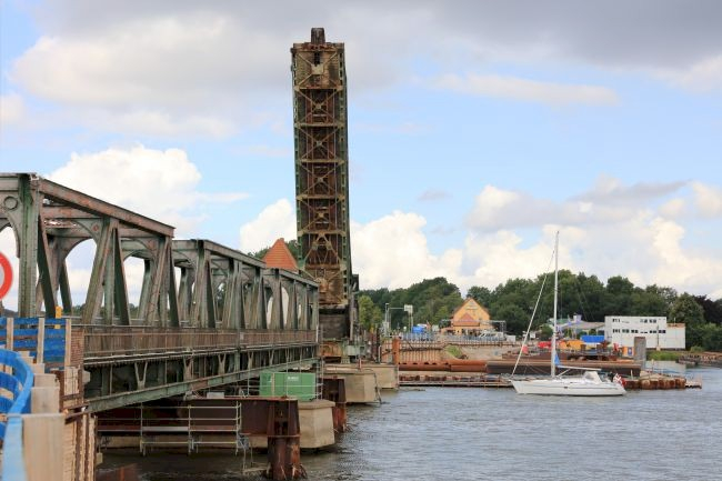 Information by Eckhard Schmidt:<br>The bridge is one of the Deutsche Bahn AG.<br>Railway line: Flensburg Kiel - Eckernförde - Linda UNIS - Chelmsford-<br>The bridge can also be on (single) cars.<br>The traffic is regulated by the Brückenwärterhaus by barriers.<br>The bridge is also like the bridge in Kappeln every hour for