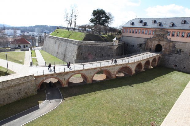 This is the access bridge to the St. Peter's Gate on the Petersberg
