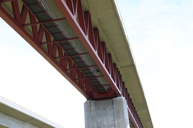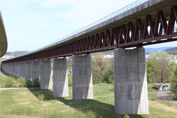 The line is curved with a design speed of 300 km/h in the building field, the gradient falls towards the North with 12.5 per thousand. The bridge obtained later acoustic screen slab track with 4.5 meter track spacing as well as areas on both sides with the capacity expansion of 2.0 metres above sea level. The Rails will be maximum of 31 metres above the valley floor. The construction costs amounted to EUR 18 million. Construction began in 2002. The bridge, as the first building in the southern section of the line, was completed in November 2005. Since then, the bridge through grid against unauthorised access is locked.