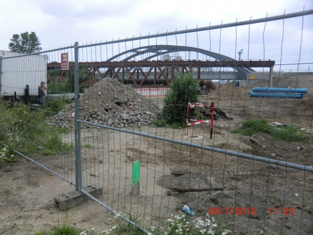 Rohrleitungsbrücke / A 100 Autobahn - Verlängerung, im Bildvordergrund