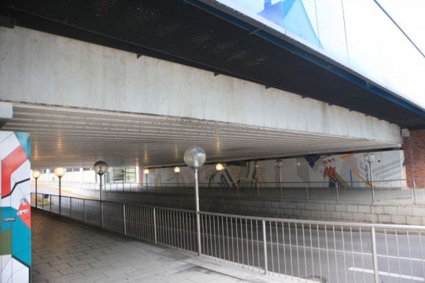 Auf beiden Seiten der Eisenbahnbrücke wurden Stahltrogbrücken für Fahrradwege ergänzt