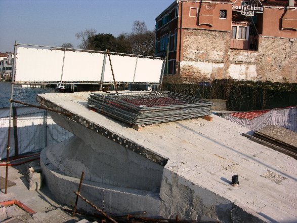 On August 11, 2007 was superstructure fitted with a floating crane.In September 2008, the bridge will be opened to the public. An opening ceremony will be abandoned, because there is still much controversy over the bridge. The bridge should be named Ponte della Costituzione, "Bridge of the Constitution"