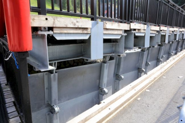 Die Brücke kann auf der Stadtseite für einen besseren Durchfluss des Fimbabaches angehoben werden.